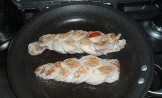 • Обжариваем косички на разогретой сковороде в растительном масле до золотистой корочки пару минут, выкладываем на тарелку.