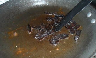 • На оставшемся масле обжариваем нарезанные на полоски сливы.
