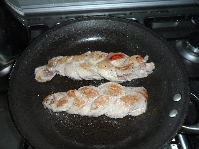 • Обжариваем косички на разогретой сковороде в растительном масле до золотистой корочки пару минут, выкладываем на тарелку.