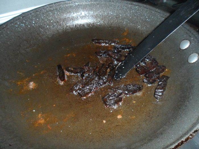 • На оставшемся масле обжариваем нарезанные на полоски сливы.