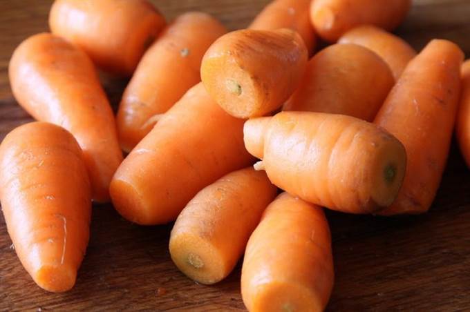 Мелкую морковь хорошенько моем, обрезаем кончики.