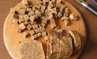 Нарезаем колобок кубиками по 1,5 см.