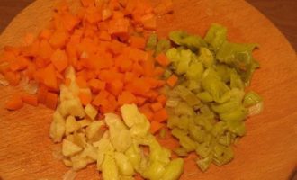 Нарезаем отварные овощи.