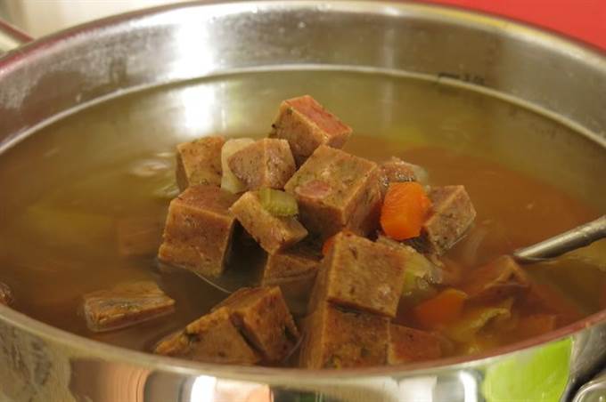 Помещаем колобок в бульон, варим на слабом огне под крышкой 1,5 часа.