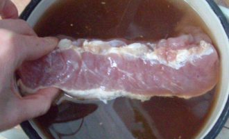 Залить этим рассолом мясо и убрать в холодное проветриваемое место на 1-2 дня (например, на балкон). Выдержанное мясо вынуть из рассола и обсушить салфеткой.