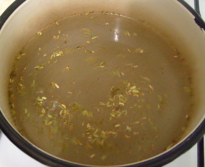 Воду (1,5 литра), соль, семена горчицы и укропа, молотый лавровый лист и довести до кипения, остудить.