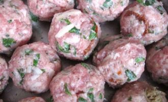 Руки сполоснуть в холодной воде, чтобы фарш не лип к ним. Скатать мясные шарики. Положить в форму, смазанную оливковым маслом.
