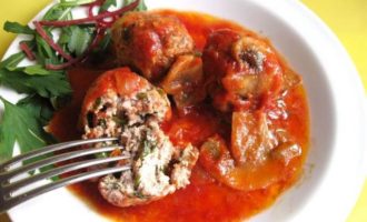 Залить соусом польпетте, поставить в разогретую до 20°С духовку на 30 минут.
