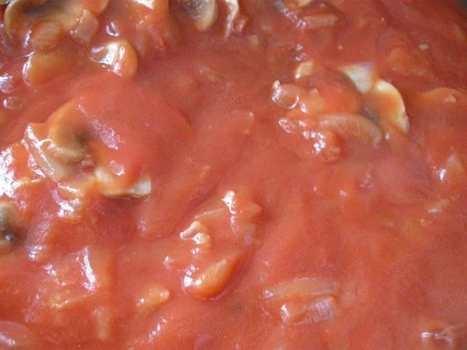 Залить соусом польпетте, поставить в разогретую до 20°С духовку на 30 минут.