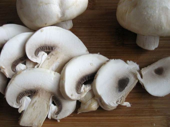 Лук почистить, порезать кубиками, грибы — пластинами. Шампиньоны можно заменить лисичками.