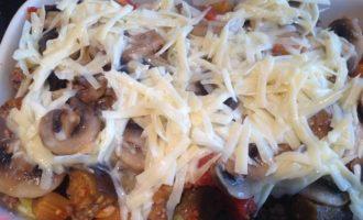 Залейте полученной смесью запеканку. Выпекайте в духовке 25 минут, до золотистой корочки.