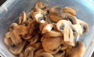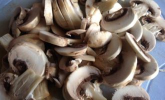Грибы нарежьте тонкими пластинами.