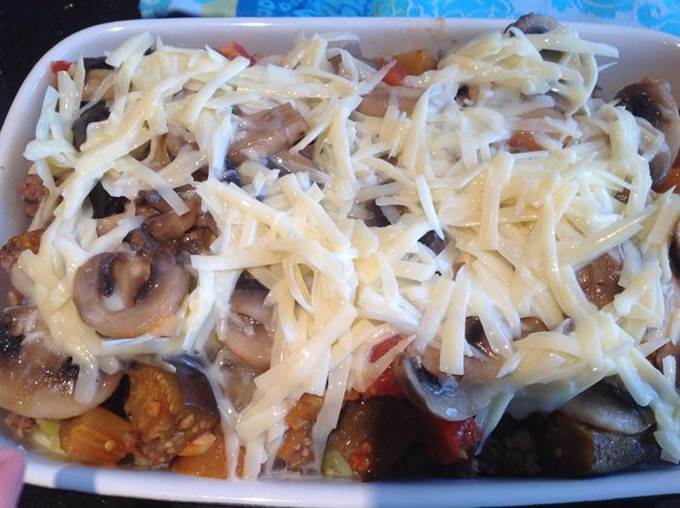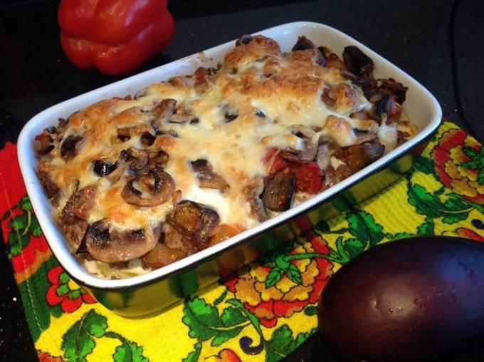 Залейте полученной смесью запеканку. Выпекайте в духовке 25 минут, до золотистой корочки.