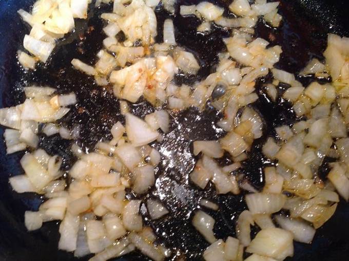 На сковороду добавьте растительное масло и обжарьте лук др золотистости.