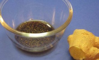• Имбирь натереть. Соевый соус перемешать с тертым имбирем.