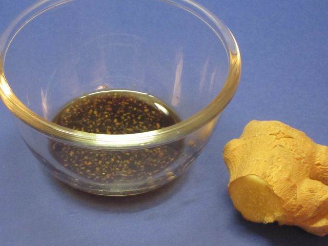 • Имбирь натереть. Соевый соус перемешать с тертым имбирем.