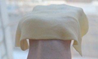 • Перенести на стол, присыпанный мукой и вымесить как следует тесто. Прикрыть полотенцем и дать постоять 20 минут.