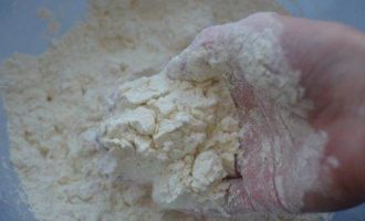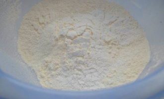 • Просеять в большую миску муку, добавить соль и соду, перемешать.
