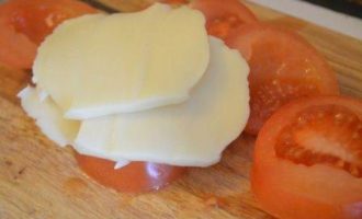 • Томаты и моцареллу нарезать на кружочки, а шпинат помыть.
