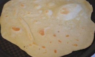 • Наколоть вилкой и обжарить на сухой сковороде с обеих сторон. Лепешка должна зарумянится.