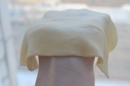 • Перенести на стол, присыпанный мукой и вымесить как следует тесто. Прикрыть полотенцем и дать постоять 20 минут.