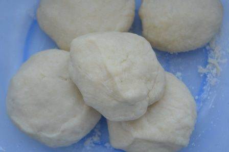 • Теперь главное все сделать быстро, чтобы насладится горячим свежим блюдом. Тесто делим на куски, у меня их 8.: я сделала с курицей, а 2 просто так съела дочка! Они и без начинки очень вкусные!
