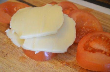 • Томаты и моцареллу нарезать на кружочки, а шпинат помыть.