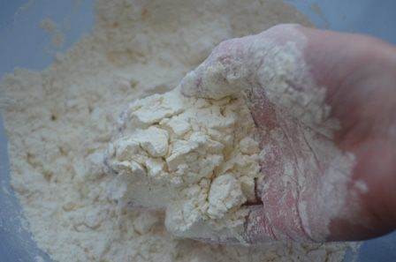 • Просеять в большую миску муку, добавить соль и соду, перемешать.