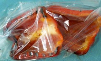 • Нам потребуется заранее подготовить все ингредиенты для приготовления пасты и соуса. В частности, крупный красный перец очистить от семян, пожарить на гриле, затем положить в пакет и дать «отдохнуть».