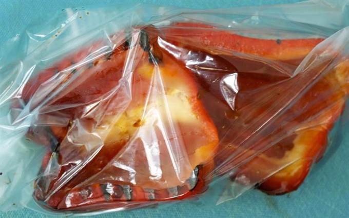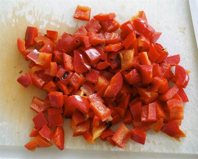 • Нам потребуется заранее подготовить все ингредиенты для приготовления пасты и соуса. В частности, крупный красный перец очистить от семян, пожарить на гриле, затем положить в пакет и дать «отдохнуть».