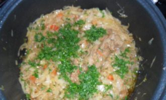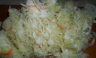 Через минут 20 добавляем белокочанную капусту. Перемешиваем.