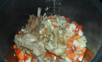 Ребра помыть, просушить и нарезать. Смешать по 1/2 ч. ложки паприки, сахар, кориандр, куркума, имбирь, орегано, чебрець и 1 ч. л. соли с 1 ст. л. оливкового масла. Этой смесью намазать ребра и оставить хотя бы на пол часа. Затем в мультиварку на 1 час на тушение.