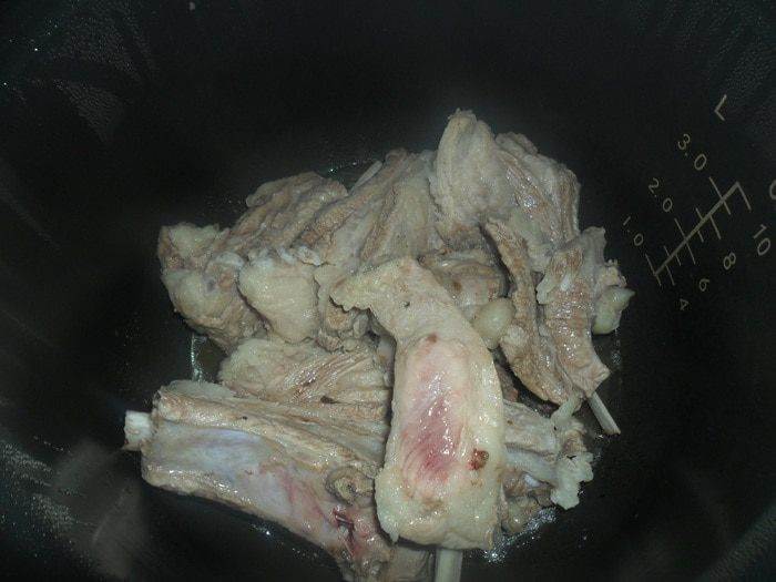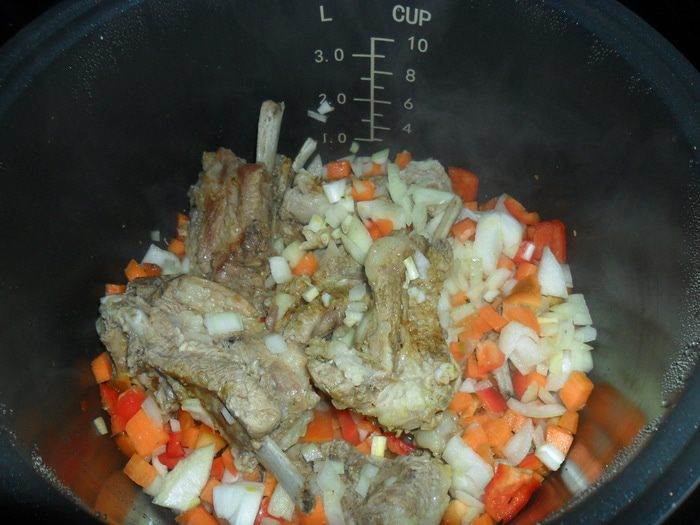 Ребра помыть, просушить и нарезать. Смешать по 1/2 ч. ложки паприки, сахар, кориандр, куркума, имбирь, орегано, чебрець и 1 ч. л. соли с 1 ст. л. оливкового масла. Этой смесью намазать ребра и оставить хотя бы на пол часа. Затем в мультиварку на 1 час на тушение.