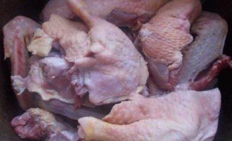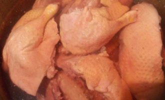 Мясо утки хорошо вымыть и залить водой так, чтобы она только покрывала мясо.