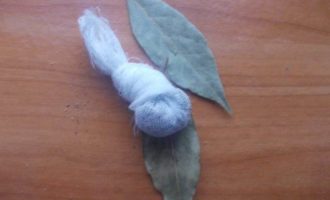 Специи складываем в марлевый мешочек и когда утка сварится на половину, где-то через 1.5 часа добавить их в бульон вместе с лавровым листом, луковицей и солью с перцем.