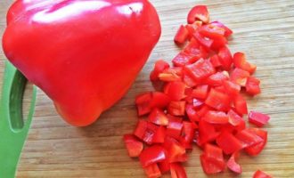 Сладкий перец нарезать тоже кубиками.