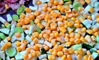 Позже всыпать кукурузу в сковороду.