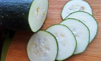 Кабачок делим на кольца.