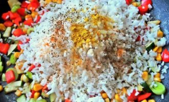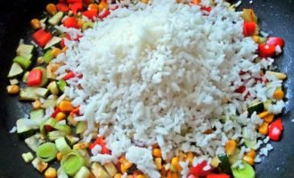 Высыпаем готовый рис.