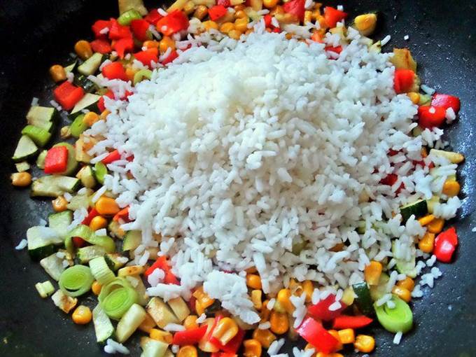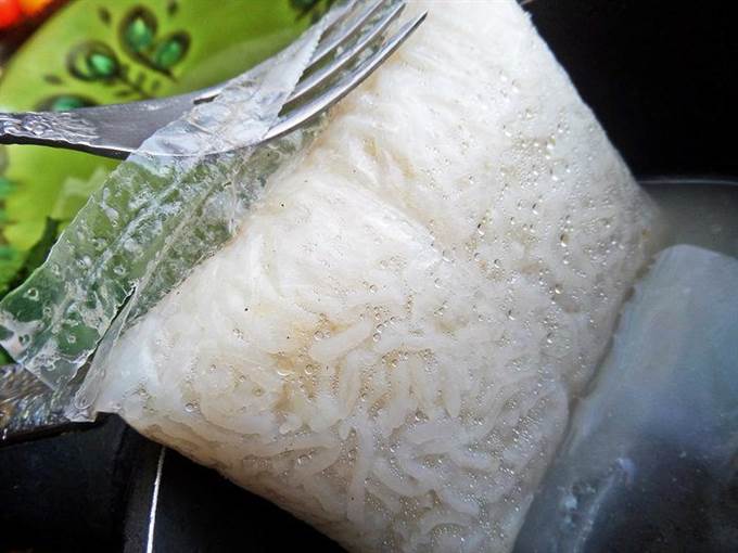 Высыпаем готовый рис.