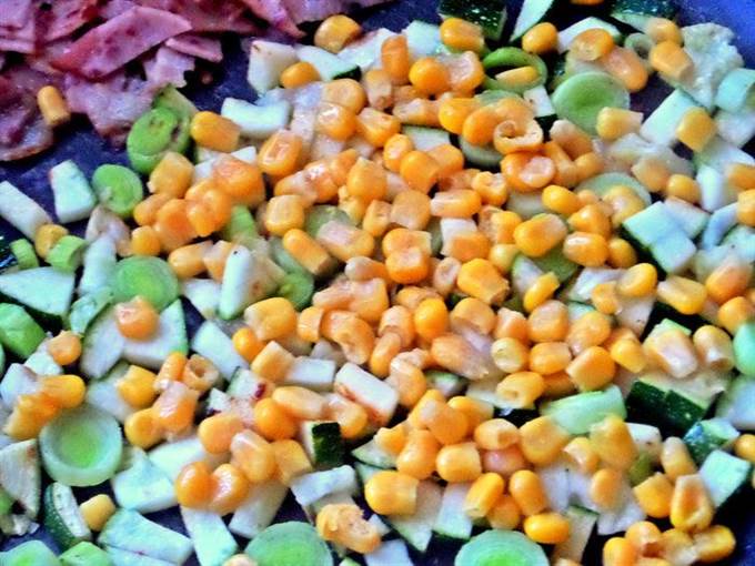 Позже всыпать кукурузу в сковороду.