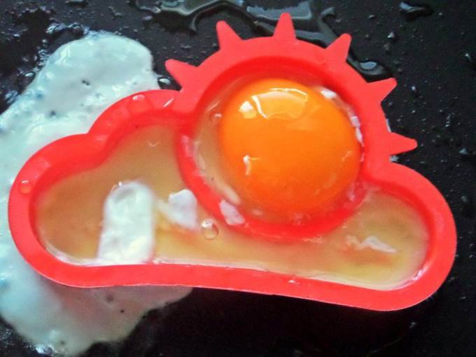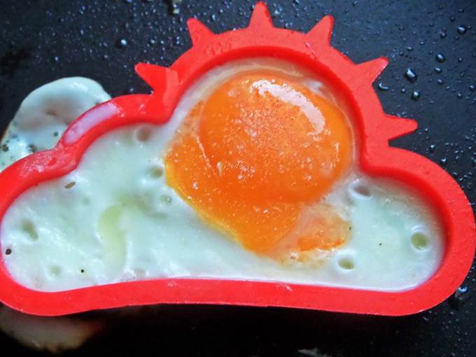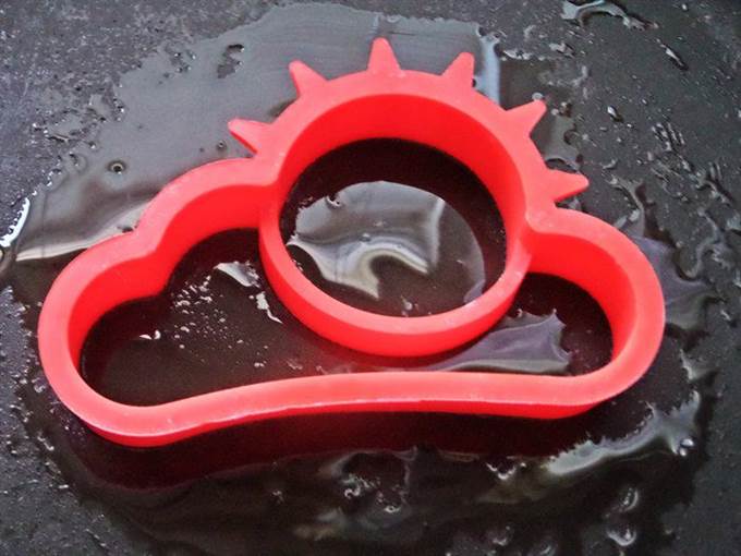 По желанию некоторых едоков-любителей яичницы, делаем глазунью с помощью такой формочки. Налить масло виноградных косточек в сковороду и поставить в него формочку.