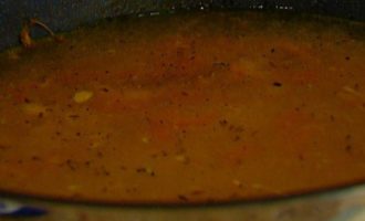 Всыпать рис, залить горячей водой, накрыть крышкой и готовить на небольшом огне.