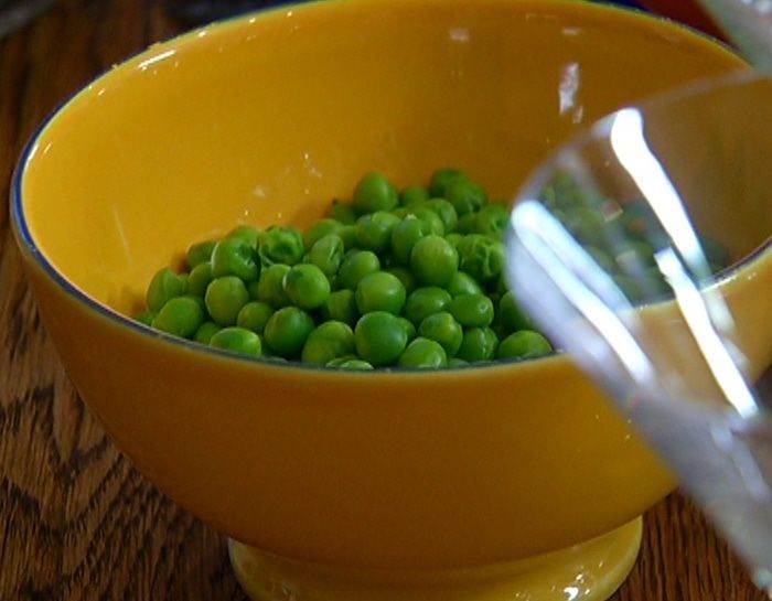 Добавить к рису зеленый горошек и кинзу, перемешать и держать на огне еще 5 минут.