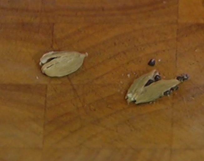 Кардамон раздавить плоской стороной ножа, вынуть семена.