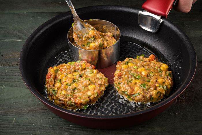 Разогреть в сковороде оливковое масло, выкладывать биточки и обжаривать с двух сторон.