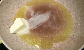 • Разогрейте сковороду, налейте оливковое масло, добавьте сливочное масло и дайте ему растаять.