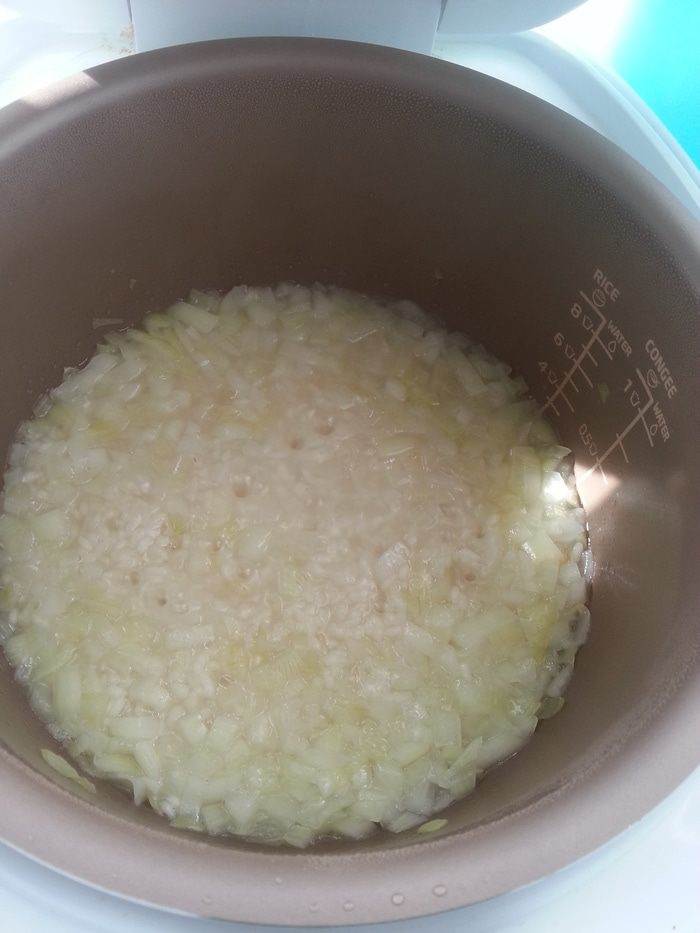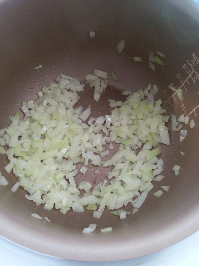 В мультиварке на програме «Жарка» обжариваем лук 4-5 минут.