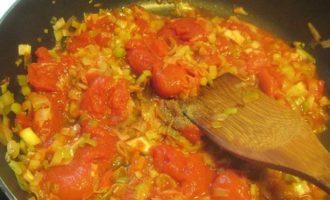 • Добавляем томаты и свежемолотый черный перец. Прогреваем.