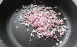 • Репчатый лук рубим мелко. В сковороде разогреваем 1 ст.л. оливкового масла и обжариваем лук до мягкости минут 10.